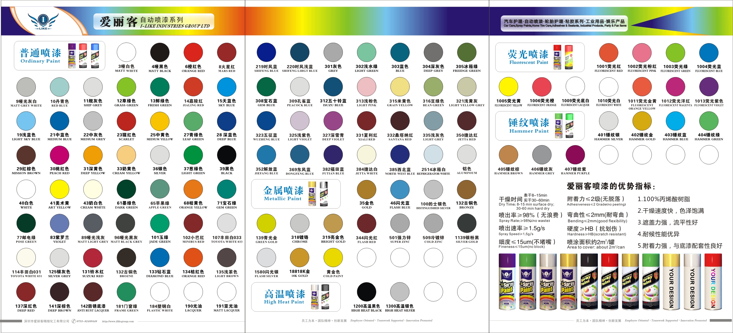 Captain Brand Spray Paint is made from thermoplastic acrylic resin and American advanced techniques. It can provide films with excellent weather resistance. The product has the Features of good leveling, high coverage, fast dry, rich color and high luster, better flexibility, impact enduring, strong adhesiveness, and match well with many types of paint primers. It can be widely used in surface finishing and mending of metal, wood, glass, leather, ceramics and plastics. The films should avoid contacting with gasoline or other solvents.